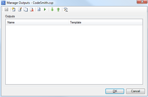 4. Right click on CodeSmith.csp and select Manage Outputs entry. You should see a modal window like this: