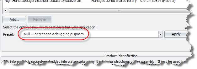 2. If you want only to pack assemblies then use Null – For test and debugging purposes or any other preset you want, just make sure you set other options appropriately.