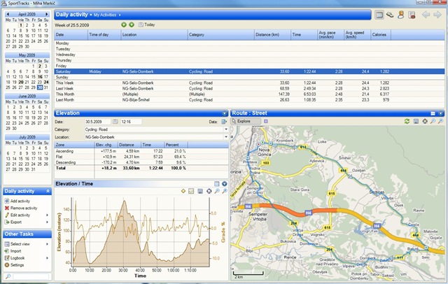 So, once I finish a daily exercise I transfer the data stored in Edge 305 to my PC through USB cable using Sport Tracks application. Sport tracks is an excellent application that keeps track of your exercises and it is not bound to bicycling in any way. It is a topic of a post on its own but if you want to keep a logbook of your exercises you should really take a look – it is free. Anyway, here is a screenshot of my last exercise as shown by Sport Tracks: